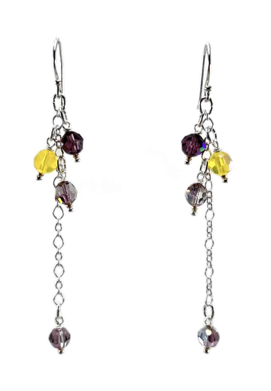 Pulsar est un modèle de boucles d’oreille dansantes, avec des perles mobiles qui « pulsent » de vie et de joie. Les perles sont de véritables cristal Swarovski, facettés. Pour un effet vibrant, coloré et chatoyant. Chaque perle Swarovski est soulignée d’une micro-rocaille haute couture. Les finitions sont en argent 925. Couleur Crocus. Modèle déposé © Florence Beauloye